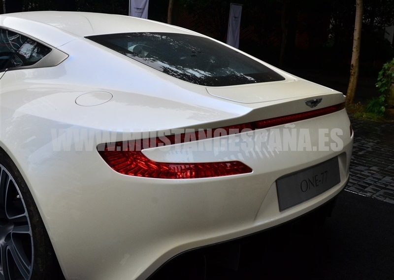 El One-77 cuenta con un completo chasis monocasco de fibra de carbono, la carrocería de aluminio y un motor de 7,3 L V12 de más de 760 CV El motor será de aspiración natural, y el coche tendrá una transmisión manual de 6 velocidades automatizada, suspensión regulable en altura, control dinámico de estabilidad y frenos cerámicos de carbono.